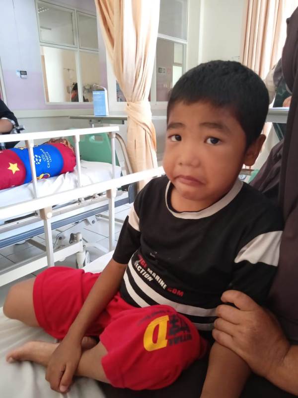 SERAMBINEWS.COM, ACEH BESAR - Bocah miskin asal Gampong Lampaseh Lhok, Kecamatan Montasik, Aceh Besar, Muhammad Fatir Fabrizi (8) sudah lima tahun menderita bocor ginjal.