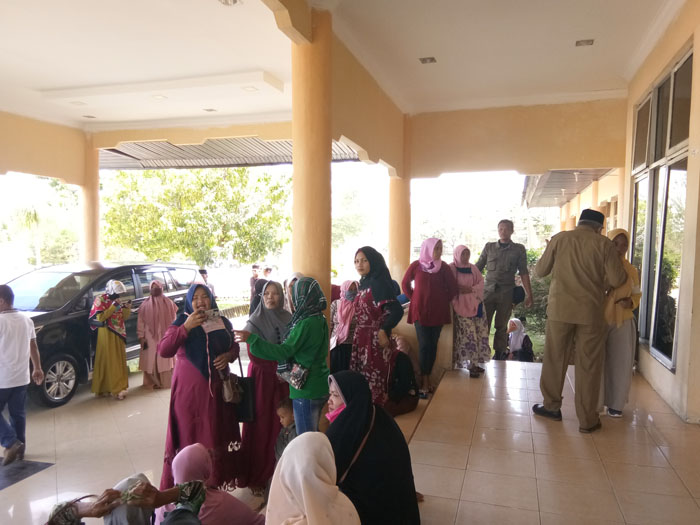 Sejauh ini belasan ibu-ibu berkumpul di teras kantor bupati menunggu pejabat ke luar. Namun hingga lewat tengah hari belum ada yang ke luar lantaran sedang menggelar rapat.