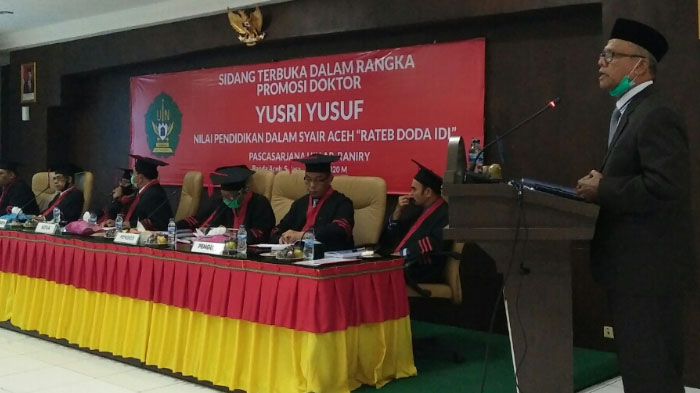 Teliti Ratéb Dôda Idi, Yusri Yusuf Raih Gelar Doktor Ke-123 Program Pascasarjana UIN Ar-Raniry
