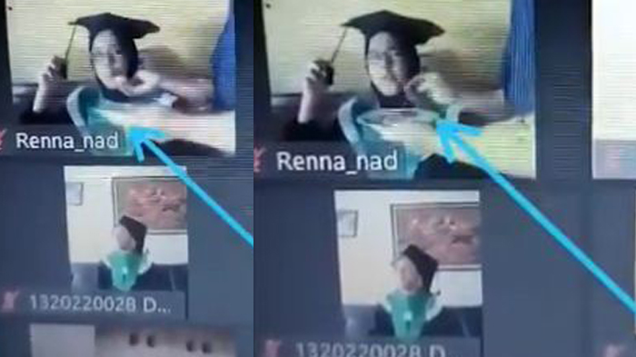 Momen berbeda dari proses wisuda online satu ini, saat sedang melakukan proses wisuda online, tiba-tiba salah satu mahasiswa terlihat sedang disuap