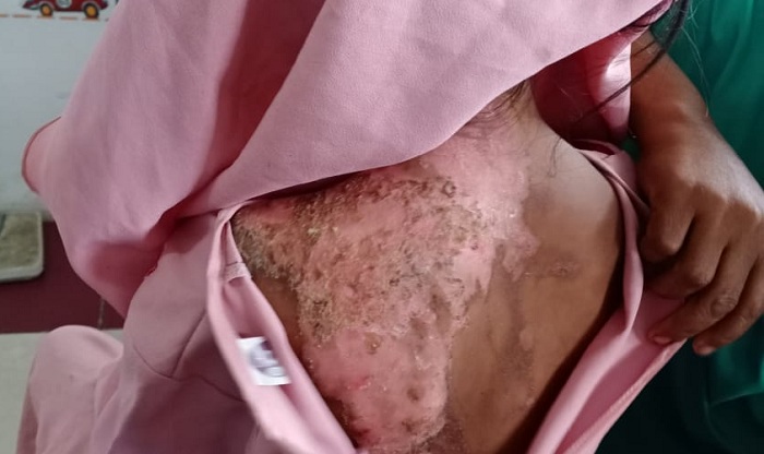 “Korban mengalami luka serius di punggung, bahu dan dada sebelah kiri akibat disiram air panas oleh ibu kandungnya sendiri sekitar bulan Juni lalu,” ungkap AKP Muhammad.