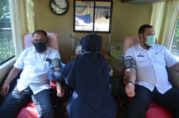 SERAMBINEWS.COM,LHOKSUKON - Cabang Dinas Pendidikan (Cabdisdik) Wilayah Kabupaten Aceh Utara bekerjasama dengan Unit Transfusi Darah (UTD) PMI Aceh Utara, kembali mengadakan donor darah di kantor setempat, Rabu (19/8/2020).