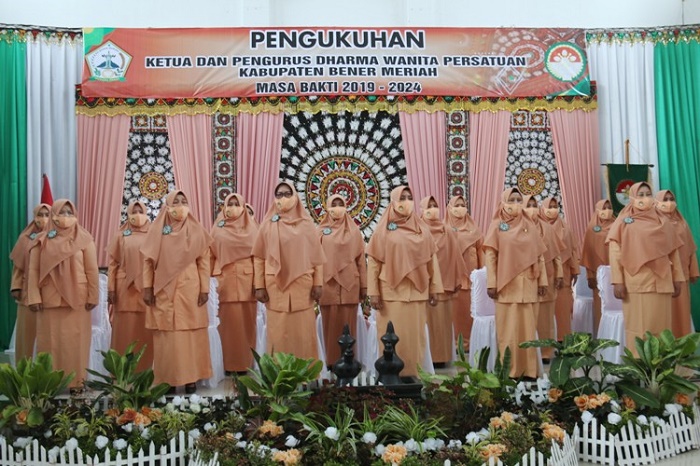 Ketua Dharma Wanita Persatuan (DWP) Provinsi Aceh, Ny Safrida Yuliani Taqwallah mengukuhkan pengurus Dharma Wanita Persatuan (DWP) Kabupaten Bener Mer