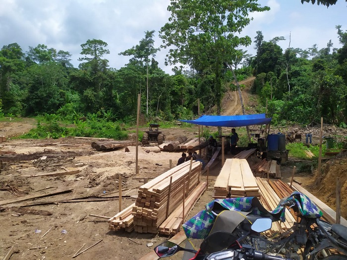 Selain itu, dalam kegiatan illegal logging tersebut, pelaku juga menggunakan alat berat jhonder untuk menarik gelondongan kayu.