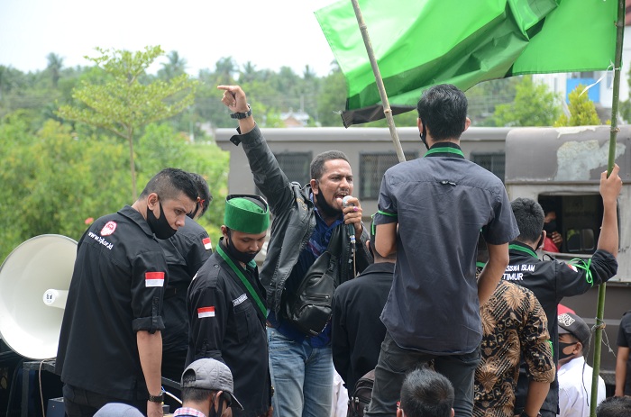 “Saya mewakili pimpinan mengucapkan terima kasih kepada ormas yang telah menyampaikan aspirasi secara damai tanpa keributan dan mematuhi protokol kesehatan,” ungkap Hafrizal di hadapan massa.
