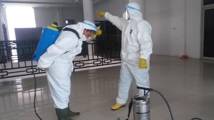 “Petugas berjumlah tiga orang, mereka melakukan penyemprotan merata mulai dari bawah sampai ke lantai atas maupun ruangan kerja,” ujar Husna.(*)