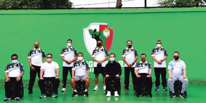 BANDA ACEH - Pangdam Iskandar Muda (IM), Mayjen TNI Hassanudin menggelar pertandingan eksibisi di Lapangan Tenis Sanggamara, di jalan Prof Majid Ibrahim, Sabtu (3/10/2020). Pertandingan digelar dalam rangka peresmian lapangan tenis Sanggamara Tenis Club (STC). Turnamen ini diikuti delapan pasangan ganda.