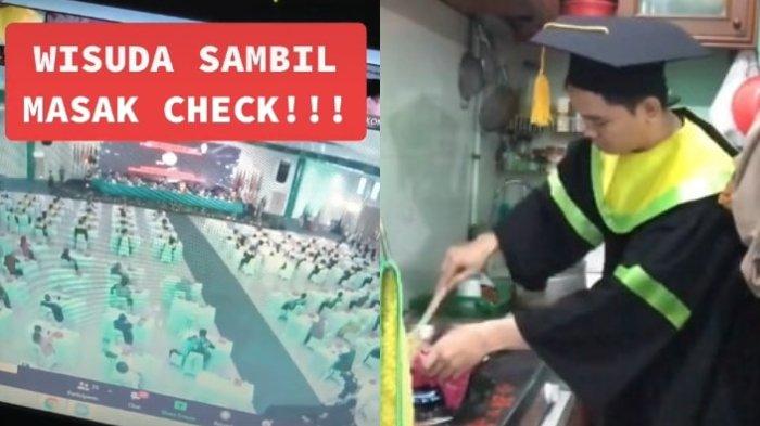 SERAMBINEWS.COM - Viral aksi seorang mahasiswa mengikuti wisuda online sambil memasak nasi goreng.