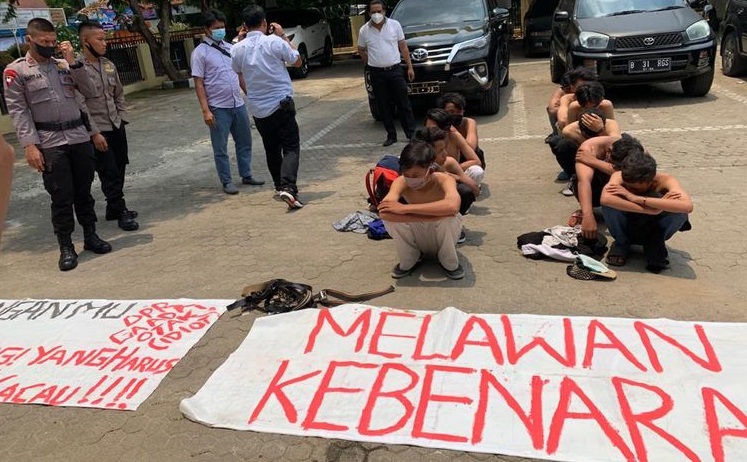 SERAMBINEWS.COM - Sebanyak 24 pelajar diamankan oleh jajaran Polres Metro Tangerang Kota ketika hendak mengikuti aksi penolakan Undang-Undang Cipta Kerja.