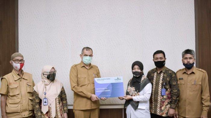PT. Taspen (Persero) Cabang Banda Aceh menyerahkan bantuan Jaminan Kecelakaan Kerja (JKK) dan Jaminan Kematian (JKM) kepada pegawai non ASN Sabang