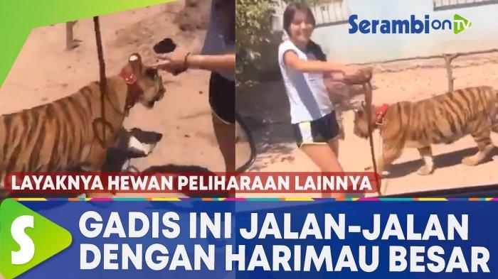 VIDEO Seorang Gadis Jalan-jalan dengan Harimau Layaknya Hewan Peliharaan