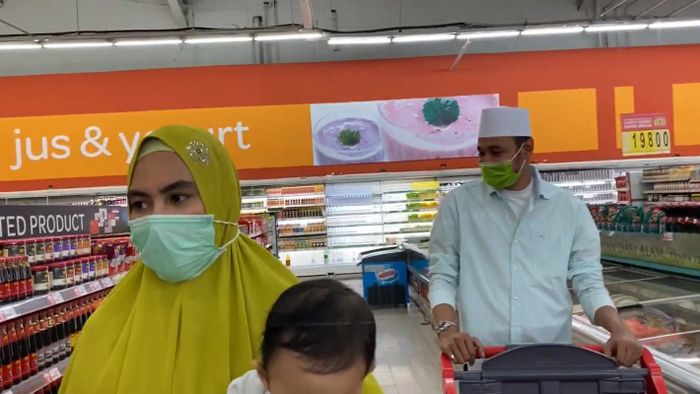 Setelah itu mereka langsung menuju ke supermarket untuk belanja bulanan.