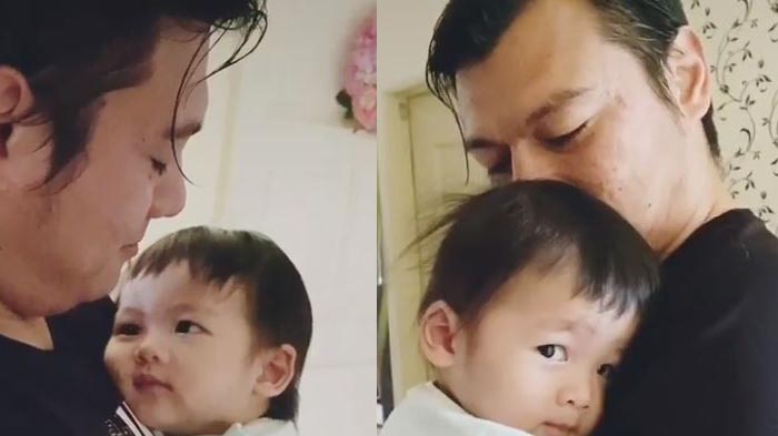 Pria pada video juga berusaha menahan air mata melihat anaknya demikian.
