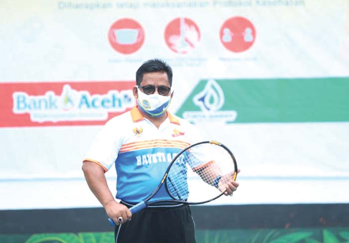Wali Kota Banda Aceh, Aminullah Usman kembali menunjukkan kepiawaiannya di lapangan tenis