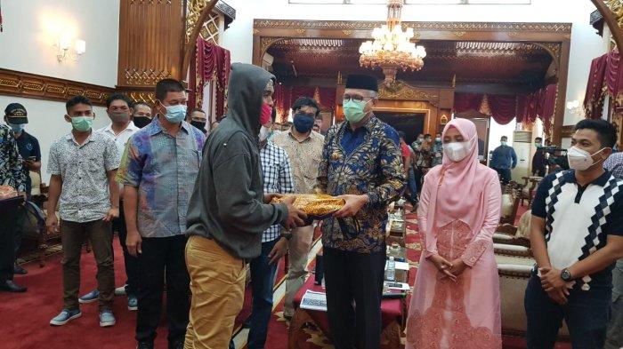 SERAMBINEWS.COM, BANDA ACEH - Gubernur Aceh, Ir Nova Iriansyah, MT, bersama Istrinya, Dr Dyah Erti Idawati, selaku Ketua PKK Aceh, serta Kepala Dinas Sosial Aceh, Drs Al Hudri MM, dan Kepala Dinas Kelautan dan Perikanan Aceh, Dr Ilyas MP, serta anggota DPRA, menerima 19 orang nelayan asal Aceh yang baru dipulangkan dari India, di pendopo Minggu (13/12/2020).
