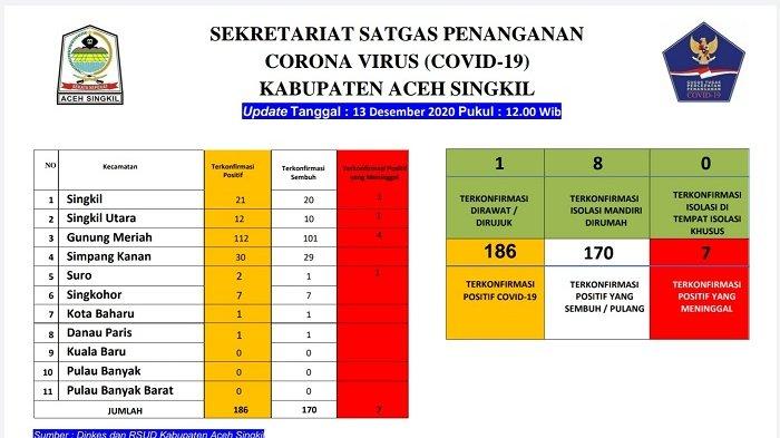 "Terkonfirmasi positif yang meninggal tujuh orang," kata Kepala Pelaksana Badan Penanggulangan Bencana Daerah (Kalak BPBD) Aceh Singkil, Mohd Ichsan, Minggu (13/12/2020).