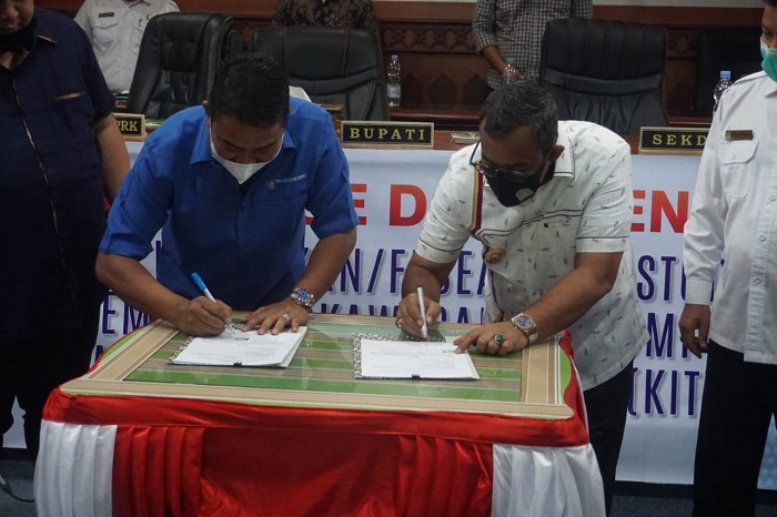 Penyerahan dokumen itu dirangkaikan dengan penandatangan MoU kerja sama antara Pemkab Aceh Jaya dengan PT Trans Continent di Aula Setdakab Aceh Jaya, Calang, Rabu (23/12/2020).