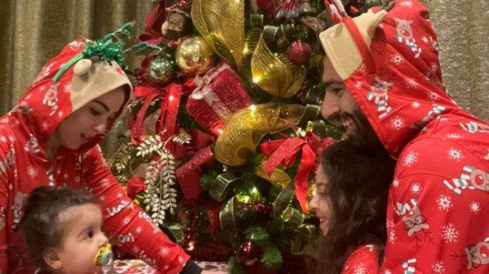 Dalam unggahan tersebut, Mohamed Salah sekeluarga tampak menggunakan baju seragam bertema natal dengan pohon natal di tengah mereka.