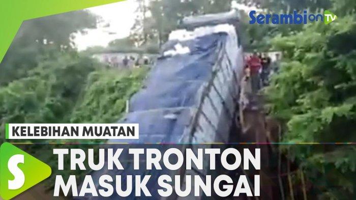 Dalam video amatir durasi 34 detik yang beredar, tampak truk amblas masuk sungai.