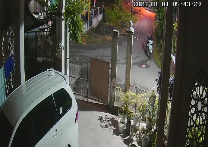 Aksi pencurian itu, kata Zulfikar, terekam CCTV tetanggga. Pencuri memakai kaus oblong hitam dan celana warna biru donker