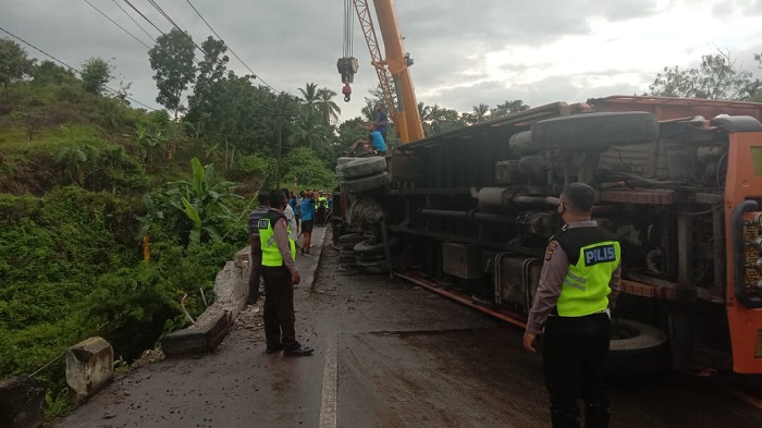 Untuk penanganan saat ini sedang diupayakan pemindahan barang bukti mobil truck dari jalan raya dengan menggunakan crane.(*)