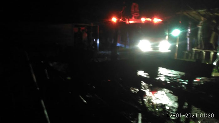 SERAMBINEWS.COM, LANGSA - Satu rumah kayu di Jalan Peutua Makam, Dusun Blang, Gampong Alue Beurawe, Kecamatan Langsa Kota, Senin (11/1/2021) tengah malam hangus terbakar.