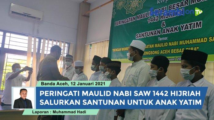 Pada kegiatan yang di kantor Persatuan Wartawan Indonesia (PWI) Aceh ini turut dilakukan penyerahan santunan bagi 30 anak yatim, Selasa (12/1/2021).