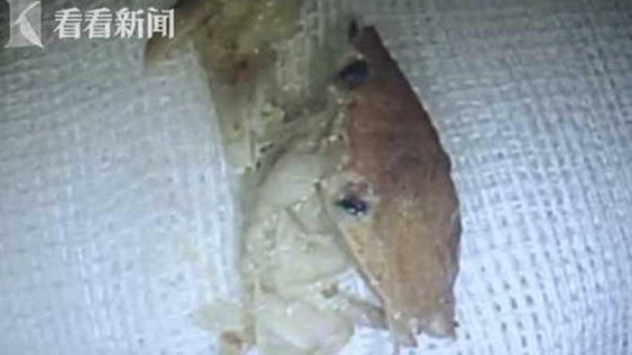 Dokter mengungkapkan bahwa ini adalah kepiting utuh dengan cangkang keras dan kaki runcing tersangkut di sana.