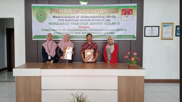 Untuk pelaksanaan Program Posbakum tersebut, Mahkamah Syariah Jantho menjalin kerja sama dengan Perkumpulan Pendidikan, Pendampingan untuk Perempuan dan Masyarakat (PP3M) yang berkedudukan di Aceh Besar dengan melakukan penandatanganan MoU (Memorandum of Understanding) atau nota kesepahaman kerjasama antara Mahkamah Syariah Jantho dengan PP3M tersebut.
