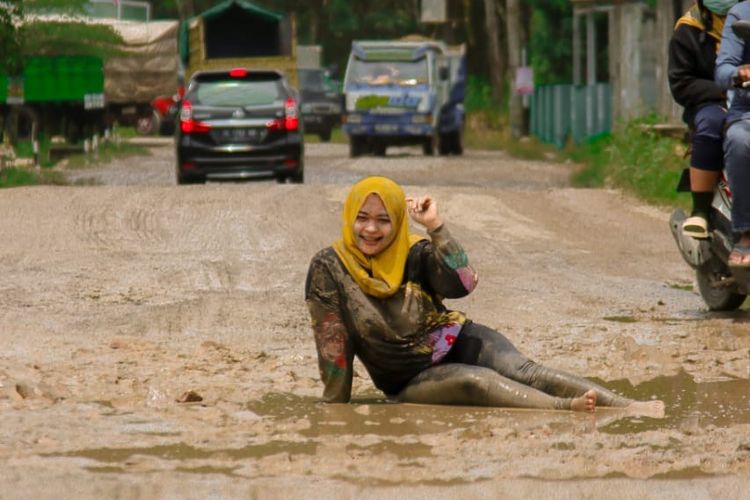 VIRAL Warga Lakukan Pemotretan Berkubangan di Jalan Rusak Sindir Pemerintah, Ini Faktanya