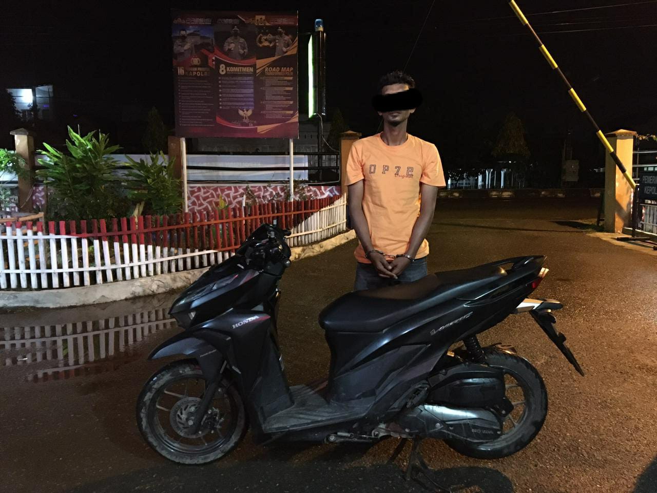 SERAMBINEWS.COM, LHOKSEUMAWE – Setelah membawa kabur sepeda motor temannya, pelaku malah menyembunyikan barang curianya di meunasah.