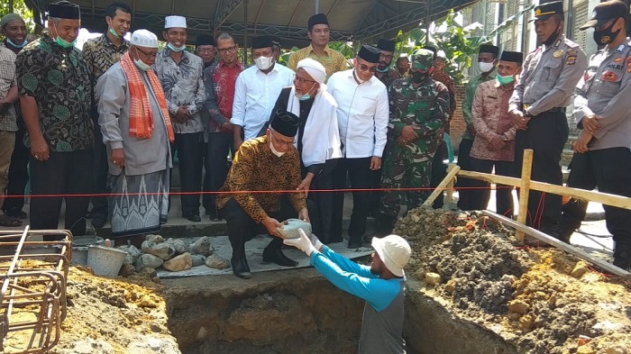 Bupati Bireuen, Dr H Muzakkar A Gani SH MSi bersama sejumlah pejabat, camat Jeumpa dan lainnya melakukan peletakan batu pertama pembangunan tempat wudhu ukuran 6 x 14.30 meter dua lantai diawali peusijuk oleh Said Abdullah (Abati Peurade) pembina Darussa'adah Aceh, turut dihadiri juga sejumlah pengusaha Bireuen serta tokoh agama.