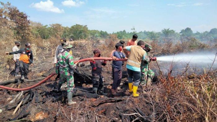 SUKA MAKMUE - Kebakaran hutan dan lahan (karhutla) di Nagan Raya meluas. Hingga Minggu (21/2/2021), areal yang terbakar di kawasan Dusun Gagak, Desa Lamie, Kecamatan Darul Makmur, menjadi 5 hektare dari sebelumnya 2 hektare. Pemadaman terus dilakukan tim gabungan meski terkendala sumber air.