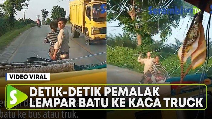 Seperti sebuah video memperlihatkan aksi lempar batu serta pemalakan yang dilakukan kepada sopir truk.