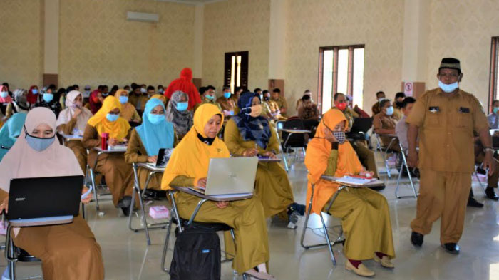 SERAMBINEWS.COM, MEULABOH - Ratusan tenaga teknisi UNBK atau operator dari seluruh sekolah tingkat SMP di Aceh Barat, Senin (15/3/2021) mengikuti bimbingan teknis untuk kesiapan pelaksanaan ujian berbasi komputer, yang berlangsung di Aula Dinas Pendidikan di Meulaboh.