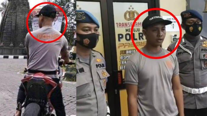Ia dibawa ke Polres Sukoharjo, lengkap dengan kaus polisi yang dia gunakan, plus motor yang ia naiki di video itu.