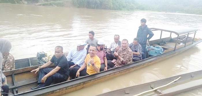 Kadisdik dan jajaran meninjau sekolah SD dan SMP di daerah pedalaman itu, usai dilaksanakannya konferensi cabang PGRI di kecamatan itu. Untuk datang ke sana, mereka harus naik boat dan rakit.