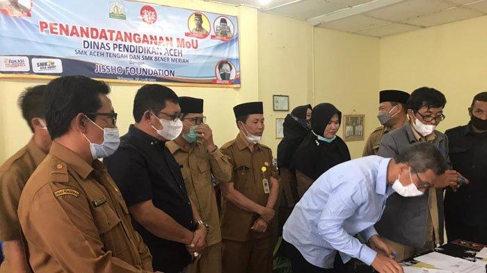 SERAMBINEWS.COM, BANDA ACEH - Seluruh kepala sekolah menengah kejuruan (SMK) yang ada di Kabupaten Aceh Tengah dan Bener Meriah telah menandatangani nota kesepahaman (MoU) dengan Yayasan Jissho Jepang, pada Selasa, 6 April 2021.