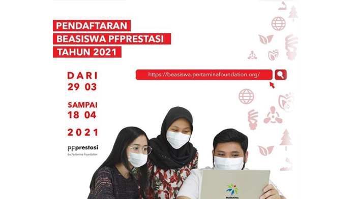 Pendaftaran beasiswa dari Pertamina ini sudah dibuka sejak 29 Maret hingga 18 April 2021.