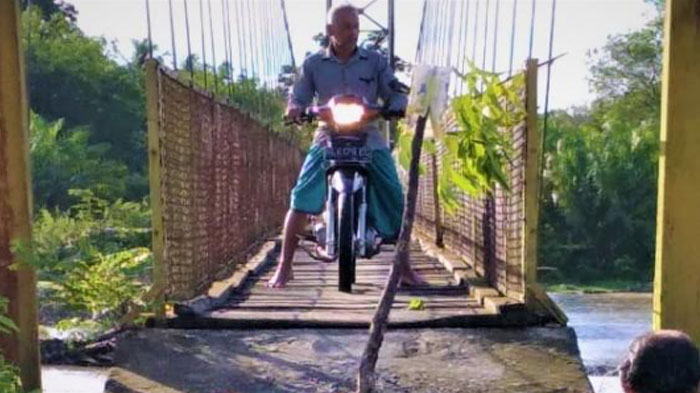 Abutment Jembatan Gantung Cot Manggie Amblas Dikikis Banjir