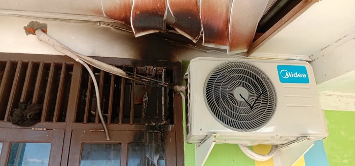 Peristiwa kebakaran bagian jendela atau dekat AC ruang keuchik diketahui pagi hari ketika petugas piket akan membuka kantor.