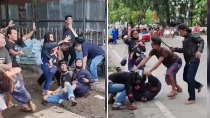 Tampak dari video yang ada, sejumlah orang terlihat membawa senjata tajam, parang, celurit, hingga kayu panjang yang digunakan untuk menyerang salah seorang di antaranya.
