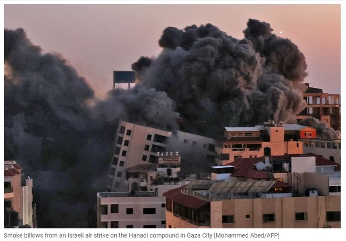 (ilustrasi). Serangan udara Israel di kompleks Hanadi di Kota Gaza Tangkap layar AFP