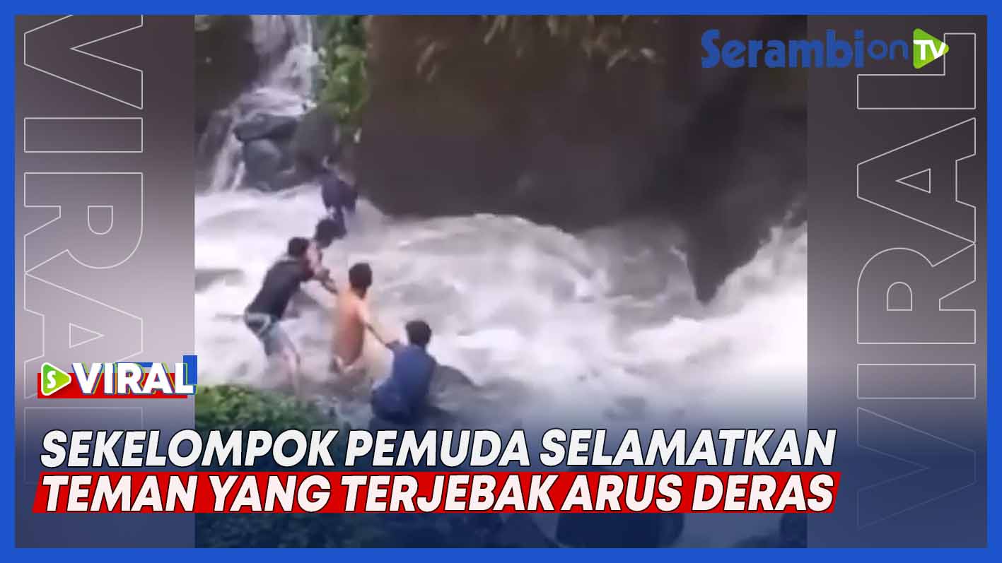 VIDEO Rekaman Sekelompok Pemuda SelamatkanTemannya yang Terjebak Arus Deras di Air Terjun Wera