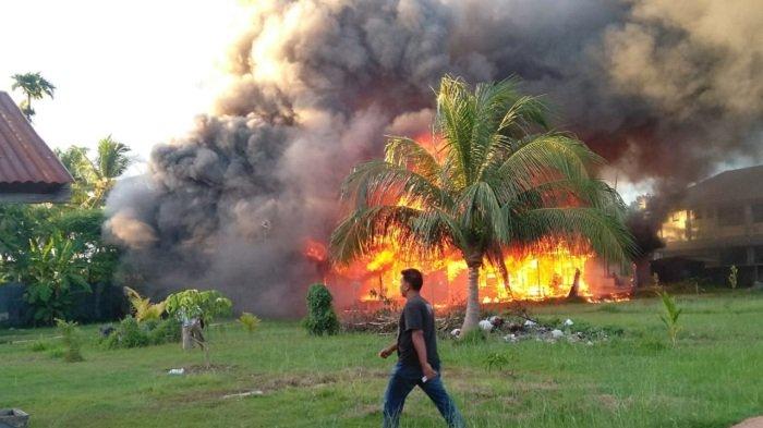 SERAMBINEWS.COM, ACEH BESAR - Tiga rumah kontrakan berkontruksi kayu di Desa Tungkop, Kecamatan Darussalam, Aceh Besar, musnah dilalap sijago merah, Rabu (16/6/2021) sekira pukul 18.26 WIB.