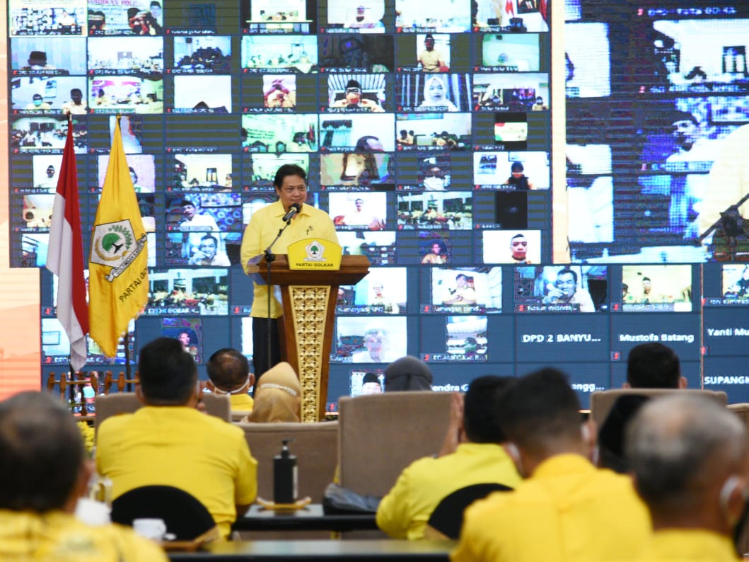 Pengarahan Ketua Umum DPP Partai Golkar di hadapan kader Golkar se-Jateng, terkait berbagai strategi untuk pemenangan Pileg, Pilpres dan Pilkada 2024, mereka dikumpulkan di Hotel Alana Colomadu, Jumat (18/6/2021).