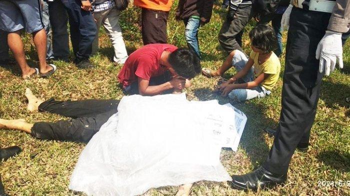 Remaja laki-laki itu datang bersama adik perempuannya tak kuasa menahan kesedihan mendapati ayah mereka sudah tak bernyawa.