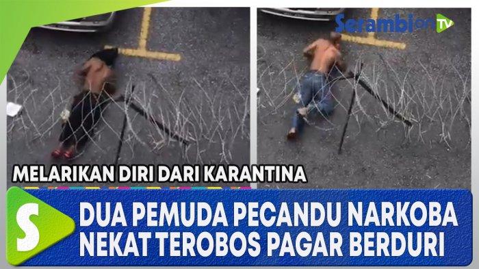 VIDEO - Dua Pemuda Diduga Pecandu Narkoba Nekat Terobos Pagar Berduri, Malarikan Diri Dari Karantina