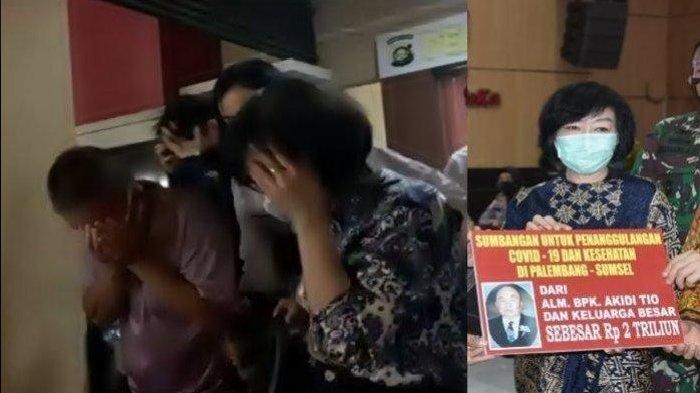 SERAMBINEWS.COM - Anak almarhum Akidi Tio, Heriyanti bersama suaminya Rudi Sutadi yang pada Senin (3/8/2021) diperiksa di Mapolda Sumsel terkait janji sumbangan atau donasi Rp 2 triliun ini sudah pulang ke rumahnya.