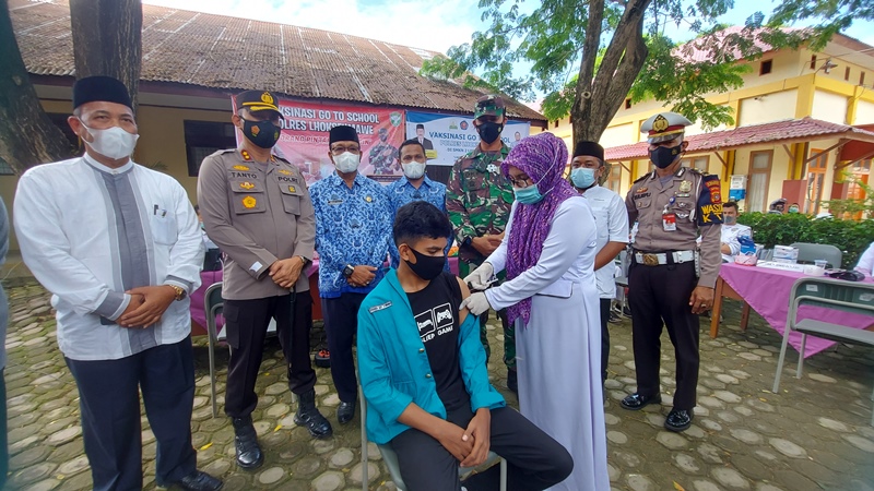 Sementara itu, Kapolres Lhokseumawe AKBP Eko Hartanto memantau langsung program vaksinasi di sejumlah sekolah di Kota Lhokseumawe.